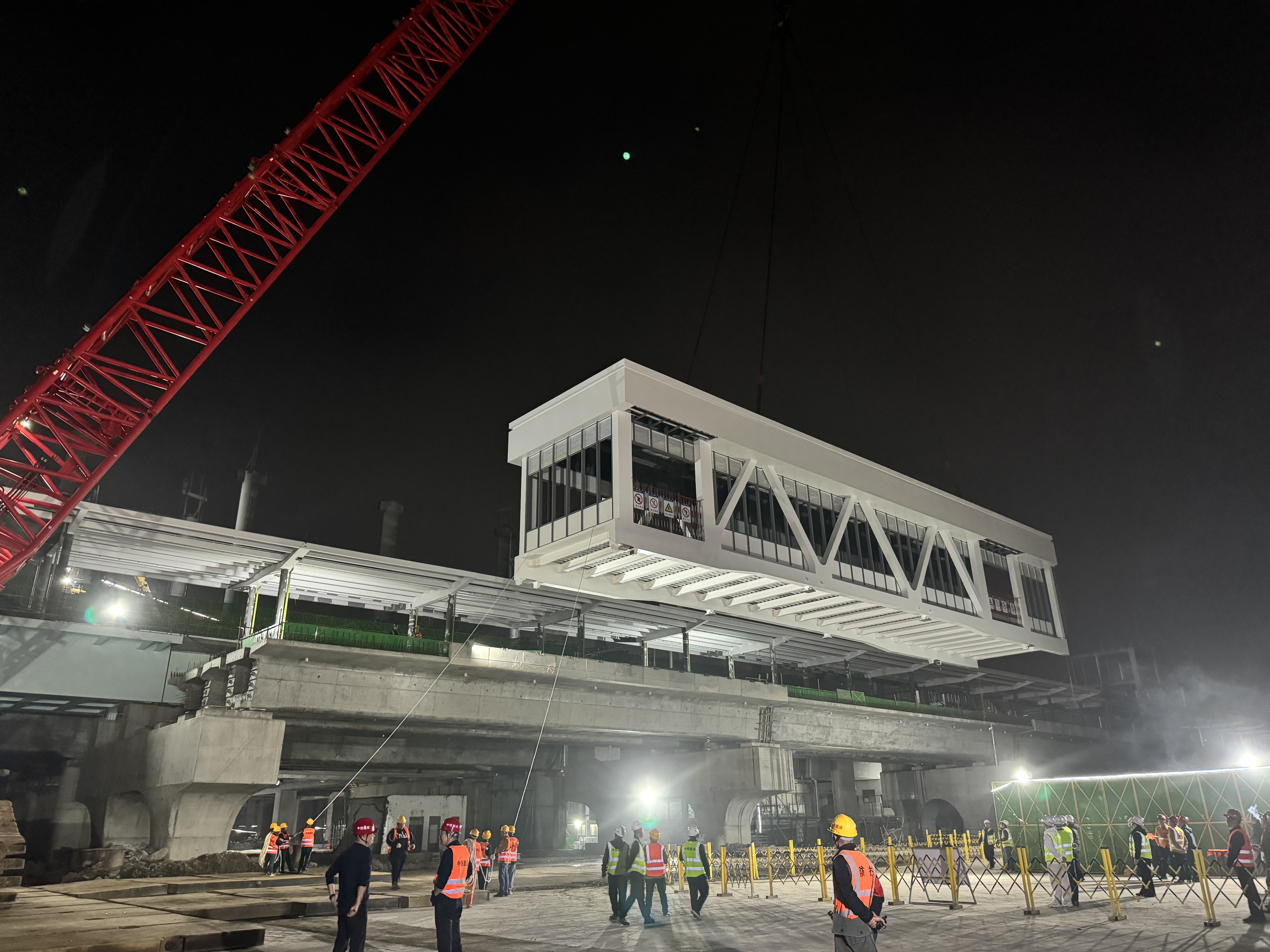 此次吊裝需要寧波工務(wù)段、寧波車(chē)務(wù)段、杭州樞紐指揮部、杭州維管段、房建公寓段、鐵四院、北京鐵研監(jiān)理等十多個(gè)相關(guān)單位,近五十多位負(fù)責(zé)人來(lái)吊裝現(xiàn)場(chǎng)指導(dǎo)、監(jiān)督、把關(guān)并應(yīng)對(duì)突發(fā)情況,進(jìn)行現(xiàn)場(chǎng)應(yīng)急處理。在總包方的統(tǒng)籌安排、全盤(pán)把控下,在富煌鋼構(gòu)各部門(mén)的大力支持下,在項(xiàng)目部管理人員的精細(xì)管理下,在一線工人的共同努力下,通過(guò)前期充分的準(zhǔn)備,精準(zhǔn)測(cè)量、模擬、分析,整個(gè)吊裝結(jié)束時(shí)間比應(yīng)急處理要求的完成時(shí)間提前1個(gè)小時(shí),得到了社會(huì)各界的一致好評(píng)。