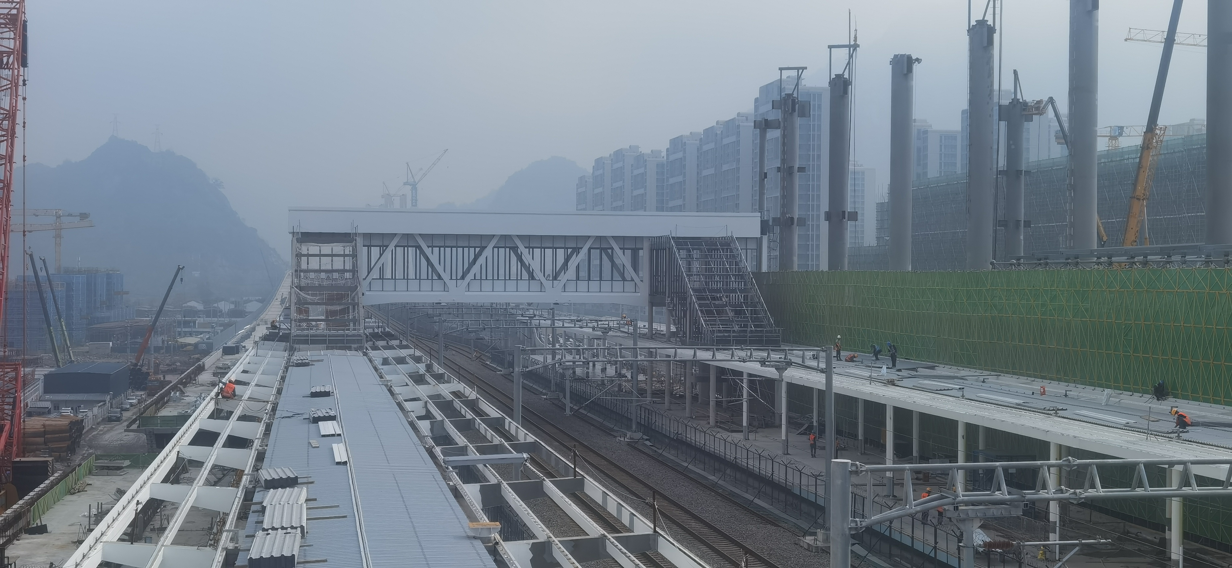 12月14日,由安徽富煌鋼構(gòu)股份有限公司承建的溫州北站鋼結(jié)構(gòu)項(xiàng)目迎來(lái)重大突破,一座長(zhǎng)43.5m、寬7m、高9.2m,重達(dá)256.3t的天橋拔地而起,使溫州北站四、五站臺(tái)高架站房連成一片整體。