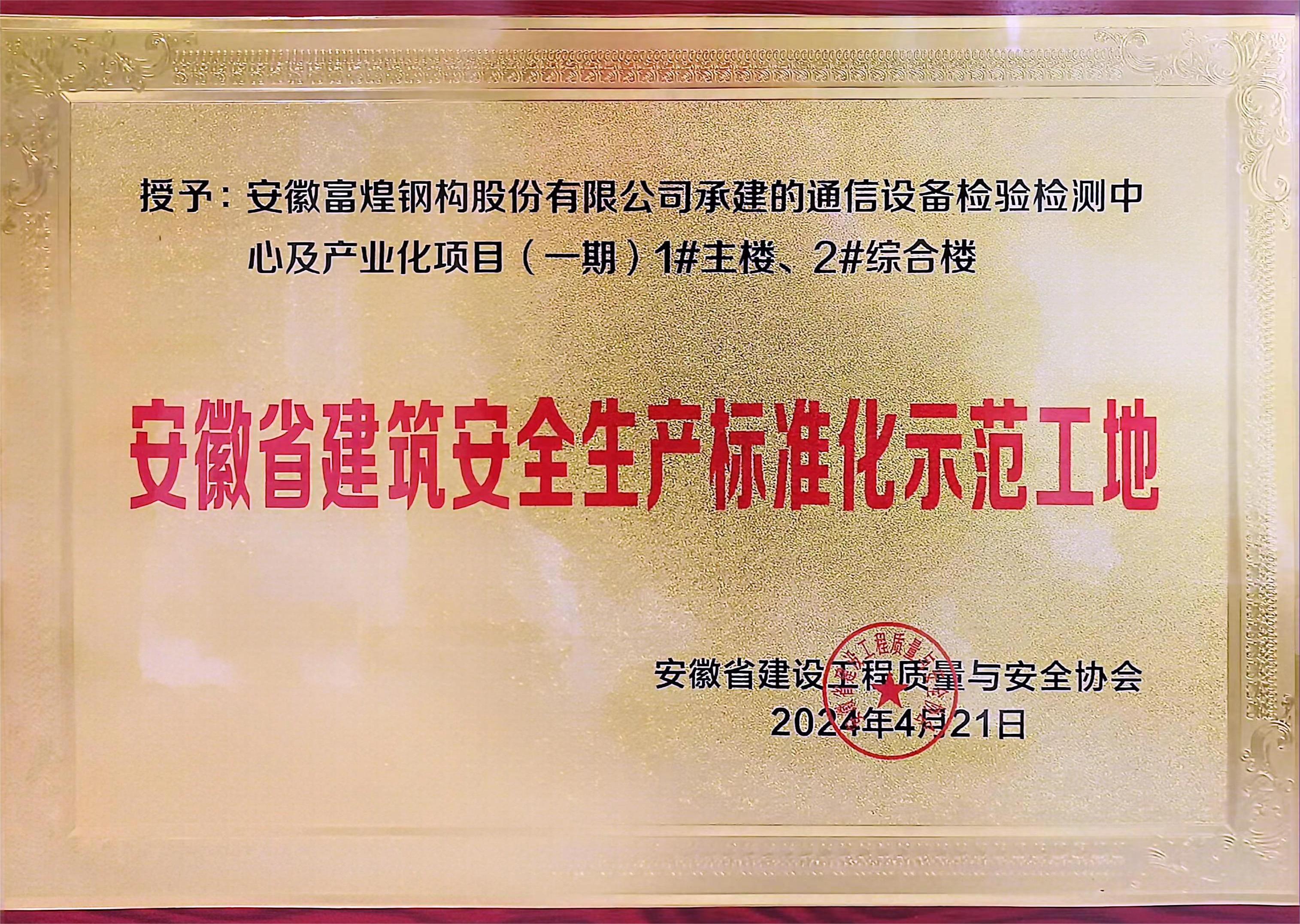 喜報|富煌鋼構一項目榮獲“安徽省建筑安全生產(chǎn)標準化示范工地”稱號